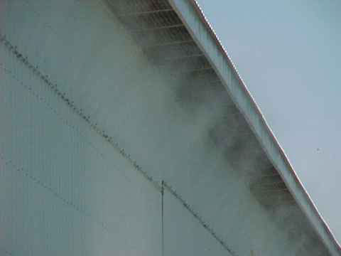 شكل رقم (6) يوضح نظام التبريد برذاذ الماء (الضباب) داخل الحظيرة وفتحات التهوية