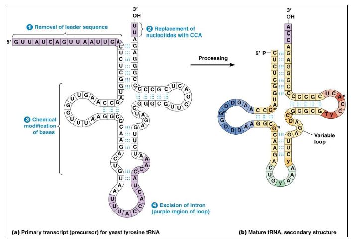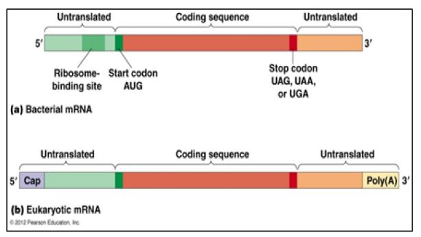 التوالي الموجود عند النهاية 5' لل RNA الذي لا يترجم الى بروتين وطوله يمتد من نهاية الجزيئة الى شفرة البدء AUG ، ويمثل جزءا منها موقع الارتباط الـــــــــــــــــــــى الرايبوزوم (Ribosome Binding Site ( rbs او مـــــــــا يسمى (Shine- Dalgarno Sequence ( AGGAGG في بدائية النواة ويمكن ان تصل الى 7 - 9 قاعدة الي يسار شفرة البدء . وتقع المناطق المشفرة لل mRNA بين
