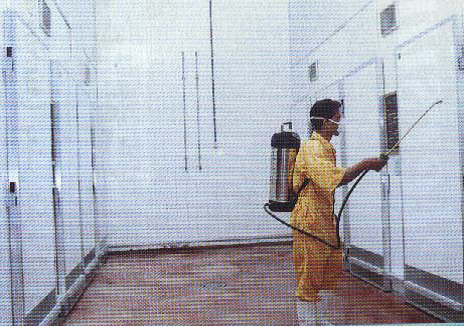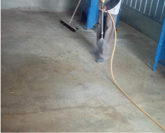 شكل رقم (6) رش وتطهير الأرضية