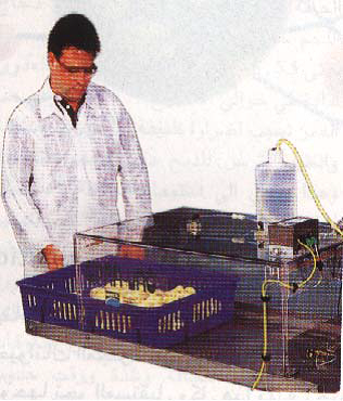 شكل رقم (3) تحصين الصيصان بالرش
