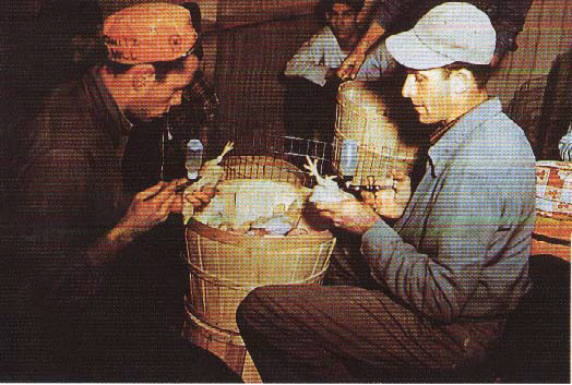 شكل رقم (1) تحصين الصيصان بقطرة في الانف