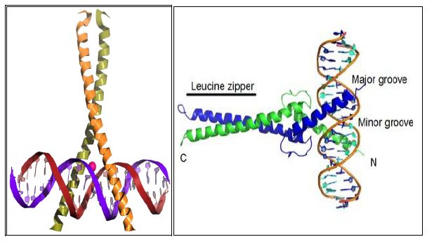 بروتينات تمثل احد اصناف عوامل الانتساخ في الخلايا حقيقية النواة تحوي على مناطق للارتباط ب DNA بشكل لا تساهمي متخصص ، يحوي على ثمالات الليوسين في حلزونات الفا ، يتكون من 60 - 80 حامض اميني وفيه منطقة ثابتة جدا قاعدية للارتباط ب DNA يتكرر الليوسن كل سبع ثمالات أي تكون هناك 4 - 5 ثمالات من الليوسين الثابتة ودومينات الارتباط ب DNA تكون بشكل مزدوج Dimer وما يقوم بربطها هو Leucine Zipper Motif