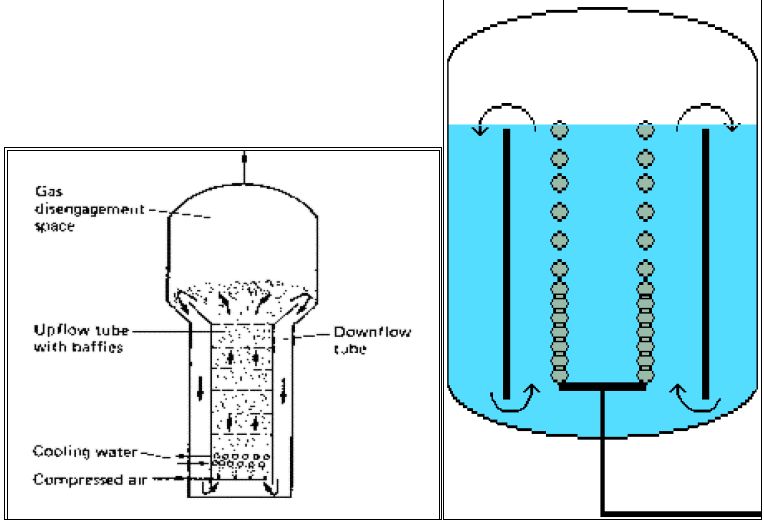 مخمرات يتم فيها الخلط بالاعتماد على الغازات وفقا لطبيعة تركيبها مثل المخمرات الدائرية Cyclic ، ومنها مخمرات الخلط الغازي (Air Lift Fermenter ) ، وقد توضع في داخلها صفائح تعمل على حركة الأوساط الغذائية بشكل دائري حيث يصعد الطور السائل المشبع بالهواء وينزل الطور غير المشبع بالهواء عند تزويدها بالهواء في الأسفل وتستعمل في حالات خاصة مثل تخمر الهيدركاربونات، أو عند استعمال الخلايا الحساسة للضغوط الالية مثل الخلايا النباتية والحيوانية الكبيرة الحجم.