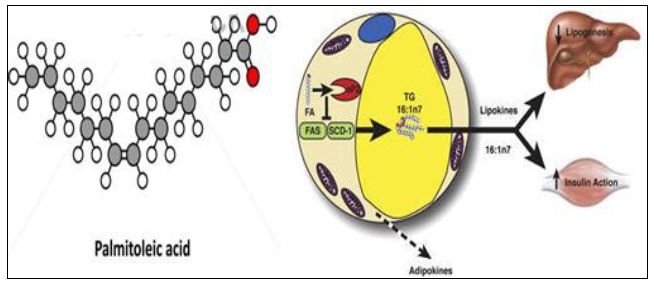 هرمون السيطرة على ايض الدهون ضمن تاثير الوصيفات Chaperone Effect ويساعد في ايض الدهون بشكل ايجابي . تركيبه (Palmitoleic Acid ( Omeg 7 . يساعد في زيادة حساسية الخلايا للانسولين ويمنع تراكم الدهون في الكبد ، كما انه يحبط الالتهابات التي تكون من العوامل التي تؤدي الى امراض الايض ، ولذا يستعمل كواسمة حيوية للتعرف على امراض الايض ، فانخفاضه يعني وجود امراض ايضية وان الجسم بحاجة الى تخليق الدهون او تزويده بالاغذية الحاوية عليها