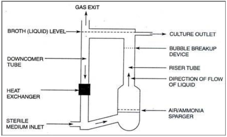 نوع من المخمرات المصممة للتخلص من التكاليف اللازمة للخلط الالي وكذلك الحفاظ على الخلايا من الأضرار الالية الناتجة ، والمخمر يصمم بحيث يحوي على أنبوب داخلي ومضخات للهواء تقع في أسفل المخمر وعادة يزود بوسائل تبريد ملائمة وعند ضخ الهواء تدور الأوساط الغذائية في المخمر يؤدي إلى اختلاطها بشكل متجانس ومثل هذه المخمرات تزود الخلايا بالأوكسجين اللازم لأنه يضخ من الأسفل وأبسط أنواع هذه المخمرات موضح في الشكل الآتي :