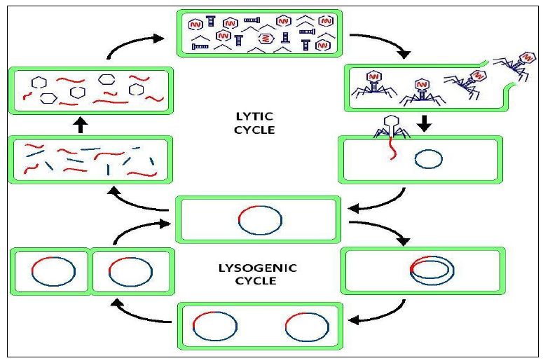 احدى انواع دورات نمو وتكاثر الفيروسات . وعند تكاثر الفيروس يؤدي الى تدمير وتحلل الخلايا ، وفيها تكون جزيئات الفيروس حرة داخل الخلية وتتضاعف بشكل مستقل عن كروموسوم الخلية ولكن باستعمال المكائن الخلوية . وهذا النوع من الفيروسات يسمى بالفيروسات الضارية ، وعندما يزداد عدد الفيروسات تعبيء ببروتين الغلاف ثم تنفجر الخلايا لتذهب الفيروسات الناتجة لاصابة خلايا جديدة ، وتكون هناك عدة مراحل اثناء التكاثر هي :Lysis , Assembly, Replication , Injection , Attachment .