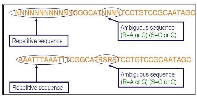 الحجب او الترشيح المستعمل في برامج المعلوماتية الحيوية ، اذ بواسطته تزال بعض التواليات المربكة مثل Low Complexity Regions لتحسين حساسية النتائج مثل تشابه التواليات . وهناك برامج يمكن ان تزيل هذه المناطق مثل DUST او SEG او RepeatMasker ، وهذه البرامج تحذف التواليات غير الطبيعية او المكررة . وهناك نوعين من الحجب Soft Masking و Hard Masking في الحالة الاولى تظهر التواليات في النتائج بشكل حروف صغيرة ، اما في الحالة الثانية فتظهر النيوكلوتيدات " NNN " وفي البروتينات تظهر بشكل XXXX ، وتضمن بعض الاحيان هذه البرامج التي تقوم بالحجب بشكل Default فيها مثل BLAST .