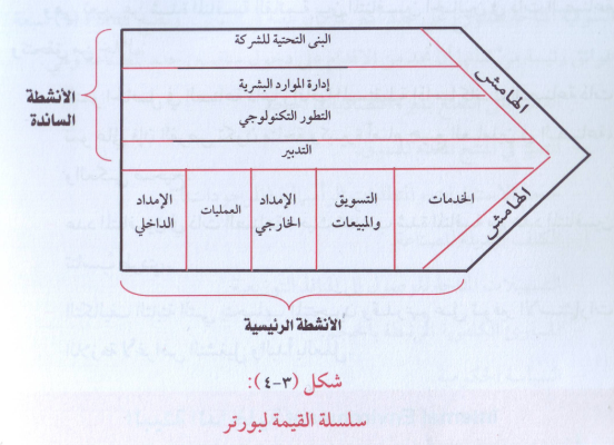 وسلسلة القيمة يمكن توضيحها بالشكل (3-4) والتي تتمثل بعملية تحليل لتلك الانشطة التي تقوم بها المنظمة والمتمثلة بنوعين هما :