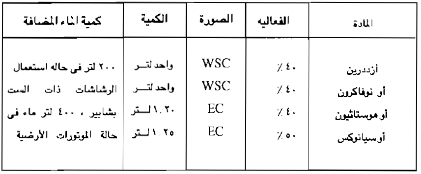 وعند ظهور الإصابة بالدودة القارضة ترش بأحد المركبات المذكورة.
