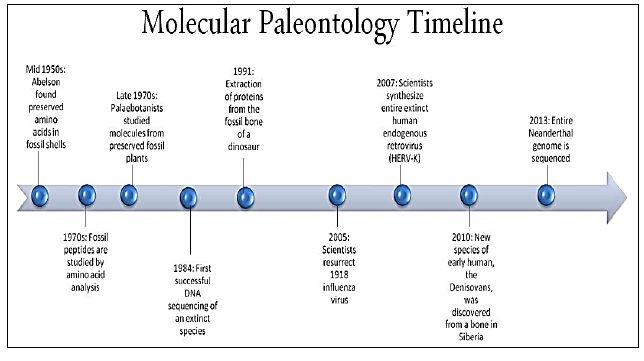 علم يختص بدراسة التحليل الجزيئي للمواد المتحجرة وذلك باسترجاع وتحليل تواليات DNA والبروتينات والكربوهيدرات والدهون وتشخيصها من الكائنات الحيوانية والنباتية القديمة . وذلك لان التغييرات الجزيئية في حالة التطور يمكن تتبعها من تواليات الحوامض الامينية كما هو أساس البحث في علم أشكال الحياة القديمة . ودراسة الجزيئات الحيوية او متحلالاتها وتطبيق التقنيات الحديثة عليها تمكن من الوصول الى اصولها والقاء الضوء على تاريخ الكائنات كما يفيد في معرفة الاحداث التطورية للانواع الموجودة وبذا يمكن تتبع تطور الاحياء اعتمادا على المستوى الوراثي Molecular Fossils وليس على مستوى النمط المظهري وتغايرته لوحده لمعرفة انفراج الاحياء عن بعضها . وقد بدأ بدراسة هذا الحقل بدايات النصف الثاني من القرن المنصرم (القرن العشرون) ، وتعتمد دراسته على برامج حاسوب متخصصة