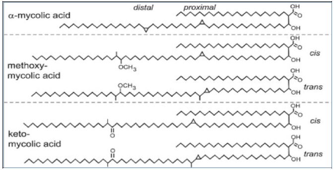حوامض دهنية Hydroxy Fatty Acids ذات سلاسل طويلة متفرعة ولها مشتقات عدة ، توجد في جدران مجموعة Mycobacteria كتركيب اساسي مثل Mycobacterium tuberculosis ، تركيبها موضح في الاتي :