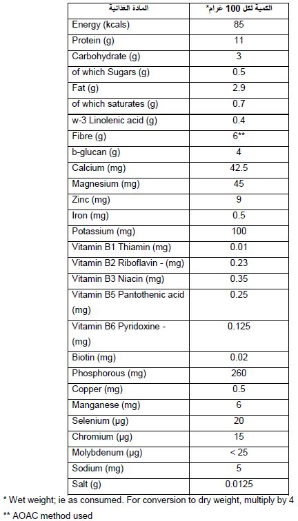ويخضع المنتوج إلى عدة معاملات بعد نمو الفطريات أهمها اختزال الحوامض النووية وخاصة RNAases وتتم بعدة طرق مثل المعاملات القلوية أو استعمال الأنزيمات المحللة RNase ، ويمكن ملاحظة مكونات البروتين الفطري المسوق في الجدول الاتي :