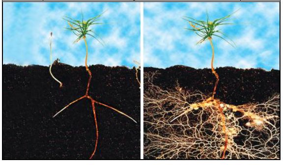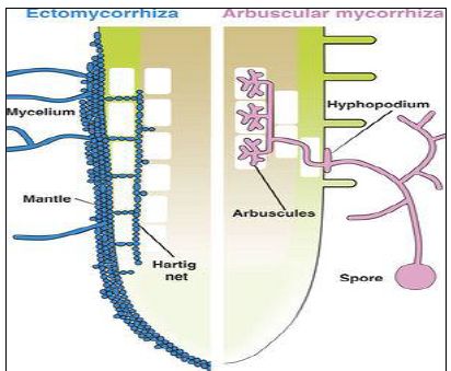 علاقة بين هايفات فطريات كيسية وجذر نبات راقي ، وهذه قد تمثل حالة من التطفل المتوازن الذي بواسطته يحصل النبات على العناصر الغذائية من هايفات الفطر خاصة الفسفور مقابل حصول الأخير على المركبات الغذائية الضرورية وقد تكون العلاقة على نوعين خارجية Ectomycorrhiza أو داخلية Endomycorrhiza . ومن أفضل الأمثلة عليها انتاج الكمأة Truffles الذي يستعمل في التغذية المباشرة ويكثر في مناطق العراق الوسطى والمناطق الصحراوية الغربية في العراق . والصور التالية توضح العلاقة :