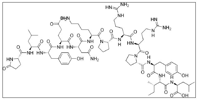 ببتيد بطول 13 حامض اميني وهو من الناقلات العصبية Neurotransmitter يوجد في الدماغ ويعمل في تنظيم اطلاق هرمونات الهضمية والغدة النخامية مثل هرمون Luteinizing Hormone و Prolactin ، يتوزع خلال الجهاز العصبي المركزي وباعلى المستويات في الغدة تحت المهاد Hypothalamus ، ويوجد في Endocrine Cells للامعاء الدقيقة الذي يساعد في الافراز وتقلص العضلات الملساء ، زيادته تؤدي الى اعراض عدة منها عدم الشعور بالالم او فقدان الوعي Analgesia وانخفاض حرارة الجسم وزيادة الحركة ويمكن ان يؤدي الى تمدد الاوعية الدموية وخفض ضغط الدم ، ويعد من المشطرات القوية في حالة سرطان القولون – المستقيم (Colorectal Cancer) . يشارك في تنظيم مسارات Dopamine ولذلك يؤدي الى ا عراض تشبه الاعراض الناتجة عن استعمال ادوية الامراض النفسية صيغته الكيماوية ، C78H121N21O20 و تركيبه موضح في الاتي :