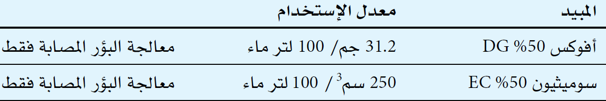 توقيت المكافحة: عند ظهور الإصابة: