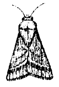 يعادل حجمها حجم الحشرة السابقة ولونها بني غامق ويميز الجناح الأمامي بوجود حرف Y في وسطه وكذلك توجد خطوط متعرجة لونها رصاصي مصفر على حواف الجناح الأمامي، واليرقة لونها أخضر وتوجد خمسة خطوط طوليه بيضاء على جسم اليرقة ودوره حياه هذه الحشرة تشبه دورة حياه الحشرة السابقة، غير أن لها 4 أجيال في السنة ويبلغ مدة الجيل من 41 - ۷۰ يوما وتوجد فراشات هذه الحشرة طول العام بأعداد قليلة ولكن تزيد أعدادها في شهر إبريل.