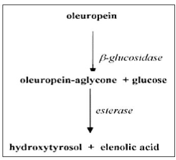 عملية تحلل للمركب Oleuropein الموجود في الزيتون ، وهناك بعض سلالات بكتريا حامض اللاكتيك التي تستطيع تحليل المركب مثل Lactobacillus plantarum منها السلالات 17 ،B 20 ،B 21 B التي تستطيع تحمل 1% من المركب ووجود 8% من ملح الطعام في وسط التنمية وتنمو برقم هيدروجيني 3.5 ، تحلل السلالات المركب عن طريق β-glucosidase مؤدية الى إنتاج الجزء اللاسكري ، ثم يتحلل الجزء اللاسكري بإنزيم Esterase معطياً المركبات Elenolic Acid ومركبات اخرى