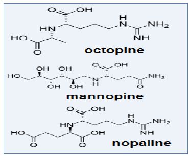 مواد نتروجينية تنتج من الخلايا النباتية المصابة ببكتريا الورم التاجي Crown Gall Disease وتنتج المواد تحت سيطرة جينات السرطان Oncogenes من الخلايا النباتية بعد تداخلها مع Ti–Plasmid للبكتيريا المرضية وهذه المواد تحتاجها البكتريا للنمو ومنها الموضحة في الشكل الاتي :