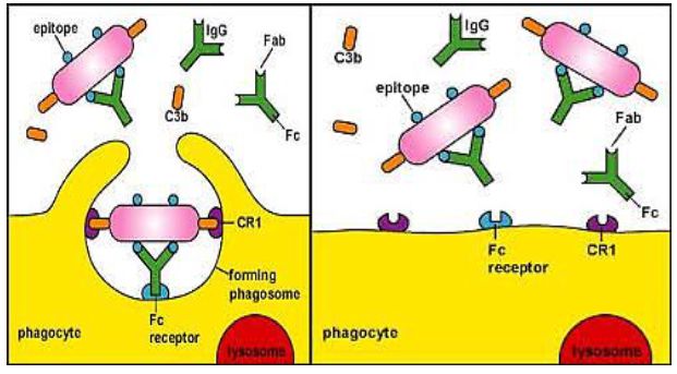 عملية تسهيل وتشجيع عمليات الابتلاع نظرا لوجود جزيئات مثل IgG التي تقود الى موت الممرضات وتسمى السمية الخلوية المعتمدة على الاجسام المضادة Antibody-dependent Cellular Cytotoxicity ، وبذلك فهي عملية مناعية التي فيها تستهدف الممرضات بتاثر الجهاز المناعي أي تعريف الممرض لغرض ابتلاعه .