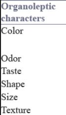 مواصفات تحدد صلاحية المواد القابلة للأكل وتشمل الطعم والرائحة والنكهة ونسجة المنتوج التي يتم التحسس بها في الفم ، وعادة يقوم بأختبار الصفات أشخاص مدربين Panelists وتجري الفحوص في أوقات معينة وتحت ظروف جيدة لإبعاد مسألة التحيز ، ولكل شركة من شركات إنتاج الأغذية طاقمها المدرب والذي يجب أن يتمتع بمواصفات خاصة وتكون لهم اعلى الاجور ، وتوجد قوائم خاصة لتقيم المنتوجات وتختلف القوائم في مفرداتها وفي درجات التقييم لكل صفة .