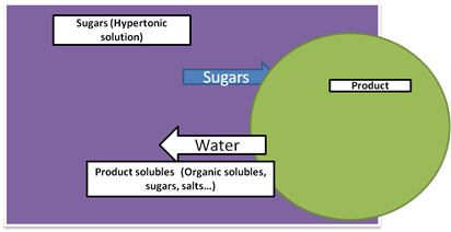 سحب الماء من داخل الخلايا بواسطة تركيز المواد المذابة حول الخلية حيث يخرج الماء من التركيز الأعلى له إلى الأوطأ وتستعمل عملية التجفيف هذه في كثير من الاحيان مثل تجفيف اللحوم بالملح أو تجفيف الخضر وغيرها من المواد بالتمليح أو إضافة أي مواد تؤدي إلى سحب الماء من المنتوجات.