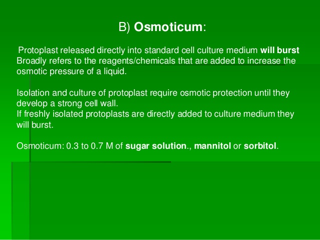 المحلول الحاوي على تراكيز معينة من المواد مثل السكريات أو الأملاح أو غيرها والذي يوفر للخلايا الحماية من الانفجار او الانكماش أي أنه يكون في حالة توازن مع الضغط التنافذي لسايتوبلازم الخلايا، وتختلف الخلايا غير الحاوية على جدران مثل البروتوبلاستات في تركيز ونوعية المحلول الحامي لها.