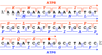 تواليات للحوامض النووية التي تكون متداخلة وهي حالة شائعة في الفيروسات وذلك يعني اشتراك بعض التواليات في تخليق بروتينين ، والتحديد يتم باستعمال آلية قراءة الإطارات Reading Frames أو استعمال أثنين من جزيئات mRNA بدأت بقراءة الجينات من مناطق مختلفة .