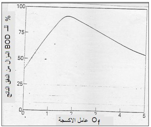 فزيادة عامل الأكسجة من 1.5 إلى 5 يكون مرافقاً لانحدار BOD ويعود هذا الانحدار إلى انطلاق المواد العضوية من الطحالب الكبيرة والمتحللة وكذلك الارتفاع في الارقام الهيدروجينية المرافقة للقيم العالية في معامل الأكسجة.
