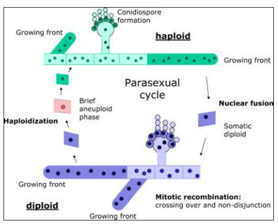 ومثل هذه الدورات تعد مفيدة ومهمة من الناحية الصناعية اذ أمكن استغلالها للحصول على سلالات منتجة جيدة وأكثر من عمليات احداث الطفرات الطبيعية ، واكتشفت لأول مرة سنة 1953 في الفطر Aspergillus nidulans ثم اكتشف وجودها في فطريات صناعية مهمة أخرى Penicillium chrysogenum و A. niger .