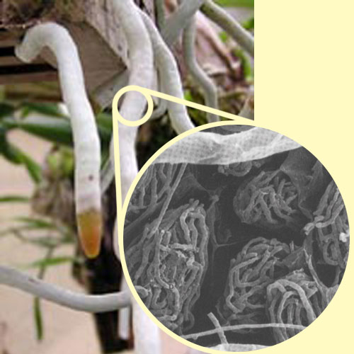 هايفات ملتوية للفطريات المكونة لل Mycorrhiza (الحالة التعايشية بين جذور النباتات والفطريات)، وتوجد في بعض حالات التعايش المذكورة حيث تكون هايفات الفطريات غنية بالمواد الغذائية وبذلك يكون النبات طفيلي على الفطر، وعند تكون هذه الهايفات الغنية بالمواد الغذائية تخترق منطقة القشرة للنبات وتتكسر مطلقة موادها الغذائية يستفاد منها النبات ، وتوجد هذه الحالة في نباتات Orchids التي تتمكن من جعل الفطريات تضحي وتطلق موادها الغذائية.