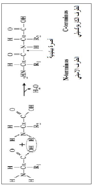الأواصر التي تربط الحوامض الامينية وتسمى ايضا Amide bond والتي تحدث بين ذرات الجزيئة الرئيسة لتكون سلاسل الببتيدات والبروتينات وتكون هذه الأواصر بسيطة نظرا لطبيعة الحوامض الامينية المتأنية وغيرالمتناظرة اذا انها تكون ثنائية القطب Dipolarized خاصة عندما تكون في محلول متعادل الحموضة (Zwitterion) اذ تكون مجموعة الأمين حاوية على البروتون والكربوكسيل منزوعة البروتون وهي صفة تعتمد على الرقم الهيدروجيني الذي توجد فيه الجزيئات وبذلك تمثل مجموعة الكربوكسيل مستقبلا جيدا للأواصرالهيدروجينية ما عدا في حالة البرولين فان مجموعة الأمين هي التي تكون معطية للهيدروجين ، وعند تكون الآصرة يرتبط الطرف ألأميني من جزيئة مع الطرف الكربوكسيلي من جزيئة أخرى مع طرح جزيئة ماء (Dehydration Reaction) كما موضح في التفاعل الآتي :