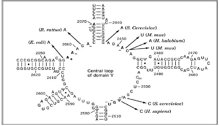 تركيب يشكل جزء من الوحدة الرايبوزومية 50S تتجمع عنده جزيئات RNA والبروتينات ليكون مركزا للتفاعلات الكيماوية وتكوين الببتيد واطلاقه ، ويعد قلب العملية المساعدة التي يلعب فيها RNA الدور الاساسي في تخليق البروتين ، ويكون Domain V المركز لتاثير العديد من المضادات الحيوية . وتقوم البكتريا المقاومة بمثيلة بعض الثمالات فيه لتؤدي بعض الاحيان الى مقاومة متداخلة لعدد من المضادات ، فضلا عن امكانية حدوث طفرات في الجين المسئول عته لاضفاء المقاومة لاصناف اخرى من المضادات مثل Linezolid .