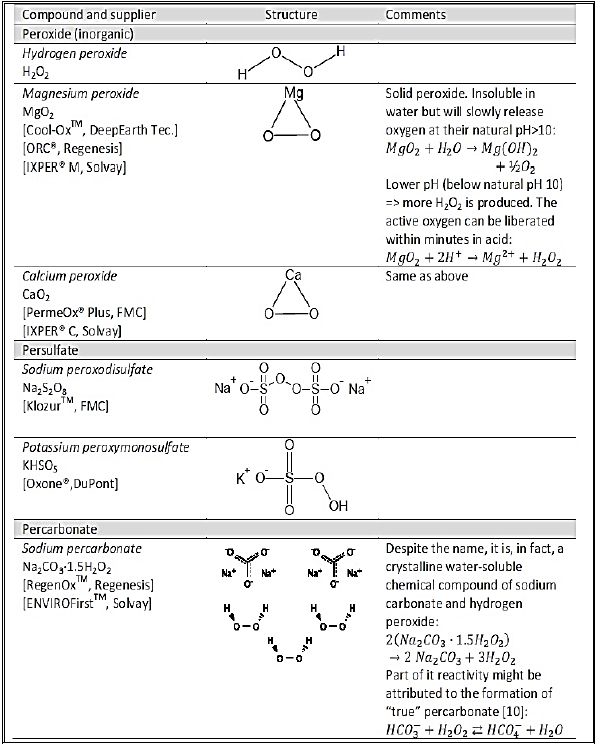 صنف من المطهرات المعقمة المؤكسدة وتكون خليط من المواد مثل Persulfate , H2O2 وغيرها والجدول التالي يوضح بعض المولدات :