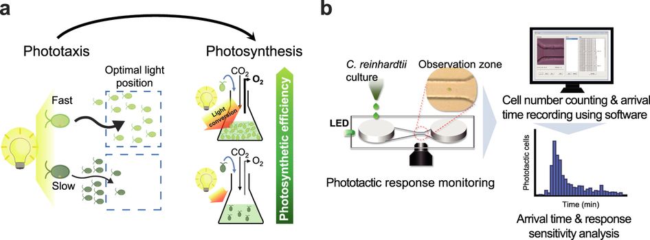 طريقة فصل الخلايا التي تقوم بعملية التخليق الضوئي مثل الطحالب بعد انتهاء العملية الإنتاجية بالاعتماد على ظاهرة الانجذاب الضوئي Phototaxis،حيث أن الخلايا يمكن أن تنجذب إلى الضوء بأطوال معينة وتبتعد عن ضوء باطوال موجية أخرى لذلك يستخدم الضوء في تركيز الخلايا في منطقة محددة ثم يستعان بطرق الفصل الأخرى من الترشيح وغيرها.