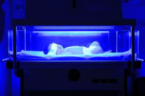 ويستعمل لعلاج زيادة املاح الصفراء Hyperbilirubinemia و اليرقان الولادي Jaundice في حديثي الولادة ، وذلك بتعريضهم لضوء بشدة عالية والضوء الازرق يكون الافضل اذ يتحلل Bilirubin في البشرة بواسطة الاكسدة الضوئية Photooxidation ، ويمكن التعريض للشمس بأوقات محددة للحصول على الاطوال الموجية الملائمة ولمدة محددة ، وتستعمل مثل هذه الممارسة للتداخل مع فيتامين D للاطفال .