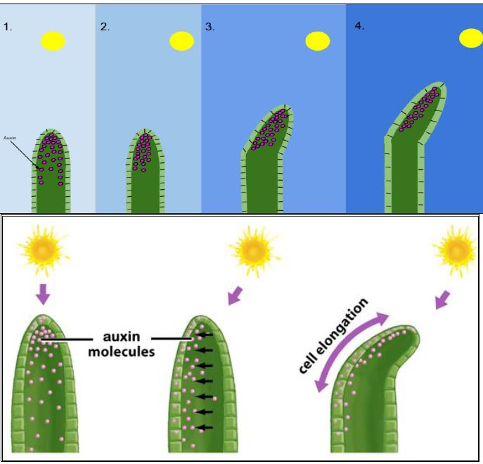 ظاهرة انجذاب الأحياء للضوء Phototaxis اذ تتحسس الأحياء التي تحتاج الضوء بواسطة أعضاء خاصة تؤدي تحركها بأي وسيلة كانت إلى المنطقة التي فيها الإشعاع الضوئي المناسب أو تبتعد عن الإشعاع المكثف ضمن هذه الظاهرة.