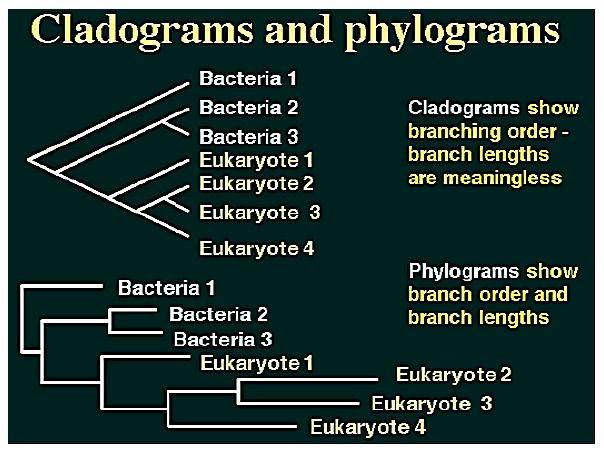على عكس Cladogram الذي يمثل شجرة متساوية الافرع لذا فهو يوضح الجد المشترك للوحدات التصنيفية ولا يوضح المدة الزمنية المنقضية في التطور والتي فصلت بين الوحدات التصنيفية .