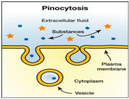 عملية دخول المواد السائلة والجزيئات الصغيرة إلى داخل الخلايا الحية الخالية من الجدران الخلوية مثل الأميبا والخلايا الحية الاخرى ، وتدخل الفيروسات الخلايا الحيوانية بعد ارتباطها على سطوح الأغشية الحيوية بهذه الطريقة.