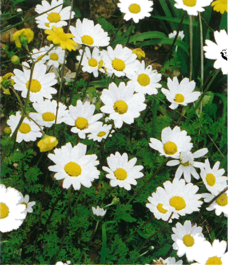 This flower is known as the stinking chamomile, it is one of many plants containing yellow dyes.