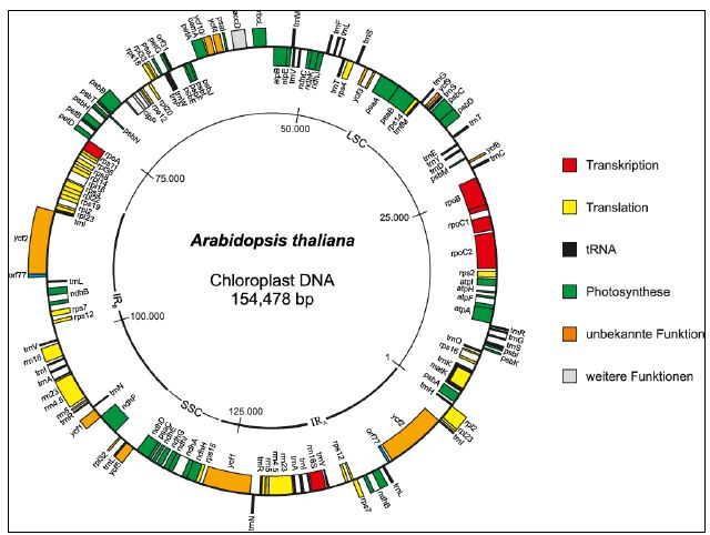 المادة الوراثية الموجودة في البلاستيدات وربما المايتوكوندريا والتي يمكن أن تخضع للكثير من التحويرات الوراثية للحصول على مواد جديدة أو بكميات كبيرة وذلك نظراً لكون البلاستيدات ليست مراكز لعمليات التخليق الضوئي فقط وإنما تكون مراكز لتخليق الدهون والنشا والحوامض الأمينية. والشكل التالي يوضح التركيب في نبات رشاد الصخر :