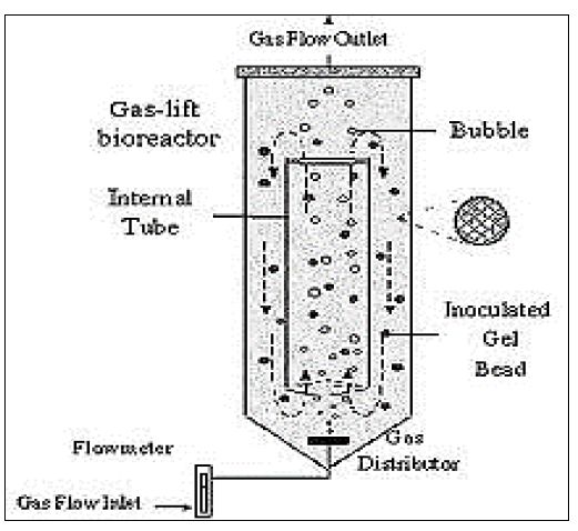 كما أن هذه المخمرات تستعمل في العمليات الإنتاجية الكبيرة حين تكون عمليات الخلط الآلي مكلفة وتصرف كميات كبيرة من الطاقة لذلك تخلط بضخ الغازات مؤدية إلى خلط مكونات الأوساط ، كما أنها تسمح بفرص أكبر لذوبان الغازات خاصة الأوكجسين حين يكون الضخ من الأسفل وتكون الفقاعات الغازية تحت ضغط عالي وتسير مسافة كبيرة لحين وصولها إلى أعلى الوسط الغذائي وذلك يضمن بقاء الفقاعات الغازية بتماس مع الوسط الغذائي لمدة أطول مما يزيد من الكميات المذابة Oxygen Transfer Rate .