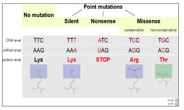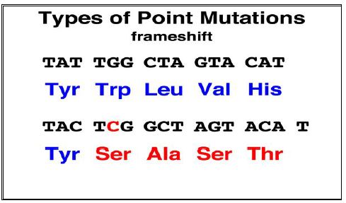 طفرة تحدث في قاعدة نتروجينية واحدة او عدد قليل من القواعد من توالي الجين . وقد يكون بتغيير القاعدة او حذف او اضافة قاعدة واحدة ، واذا حدثت في التواليات المشفرة تسمى Frameshift وتقسم الى ثلاث اقسام كما موضح في المخطط التالي ، الطفرة الصامتة عندما يكون تغيير القاعدة النتروجينية يؤدي الى انتاج الحامض الاميني نفسه