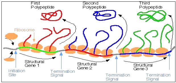 جزيئة mRNA تشفر لاكثر من ببتيد مختلف عادة موجودة في البكتريا أي تحوي على المعلومات لاكثر من Cistron وعادة تكون البروتينات الناتجة تعود لمسار ايضي واحد .