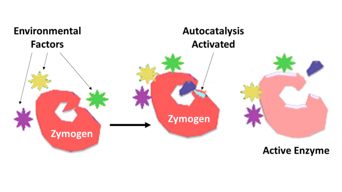 طليعة غير فعالة للأنزيم اذ تحتاج إلى تحوير شكلي أو إزالة جزء من توالياتها الببتيدية أو إضافة عامل مرافق لتتحول الجزيئة إلى أنزيم فعال.