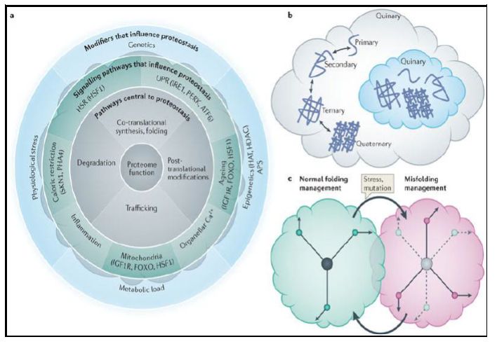 لذا فان فهم Cellular Proteostasis يمكن من استعادة الصحة والابتعاد عن الهرم ومقاومة الاجهادات البيئية ، ويكون ذلك بانتاج البروتينات المنظمة التي تنظم عمليات الترجمة وانتاج الوصيفات التي تعدل او تفكك البروتينات وفق حاجة الخلية التي تكون اضطربت نتيجة الاصابة بالممرضات مثل الفيروسات او غيرها من الاسباب .