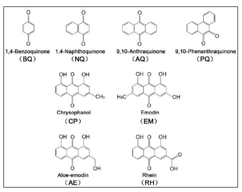 مجموعة كبيرة من المركبات ذات صبغة صفراء توجد في العصارة الخلوية للنباتات المزهرة وتوجد في الاعفان والبكتريا والطحالب . وهناك أكثر من 200 مركب معروف تتراوح ألوانها من الأصفر الفاتح إلى الأسود تقريبا واكبر مجموعة فرعية هي Anthraquinones ويعد المركب C15H10O5) Emodin) المركب الممثل لهذه المجموعة. تشمل المجموعة الفرعية الصغيرة 20 مركب صبغي تسمى Naphthoquinones ويوجد عدد من الصبغات ضمن هذه المجموعة في نبات الحناء Hanna وجوز الهند ويعد المركب Plumbogin مركب ممثل لهذه المجموعة. ومركبات Anthraquinones توجد عادة بشكل كلايكوسيدات وهناك مجموعة أخرى تسمى Benzoquinones وتوجد في الاعفان فقط وبعض النباتات المزهرة والمركب الممثل لهذه المجموعة C8H8O5) Spinulosin) اما المجموعة الفرعية ألأخرى ذات لون أحمر تسمى Naphthoquinone توجد في رتبة Actinomycetales وهي قريبة من التتراسايكلين منها Emodin الذي يوجد في الفطريات. والصيغة التركيبية كما يأتي :