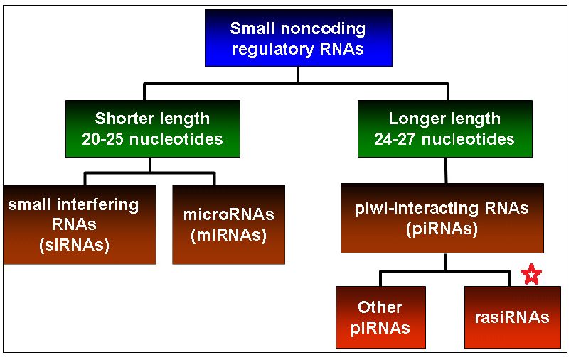 Repeat Associated Small Interfering RNA نيوكلوتيدات بطول 20 -25 وقد تكون اطول من miRNA , siRNA وهي صنف ثانوي من piwi-RNAs