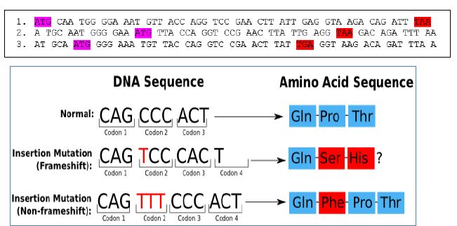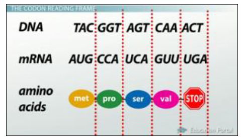 وتوجد ثلاث احتمالات لقراءة الاطار من mRNA كل واحدة تختلف في قاعدة البدء . اما في DNA ذات الشريط المزدوج فيكون هناك 6 احتمالات للقراءة ، ثلاث للشريط الاول وثلاث للشريط المعاكس .