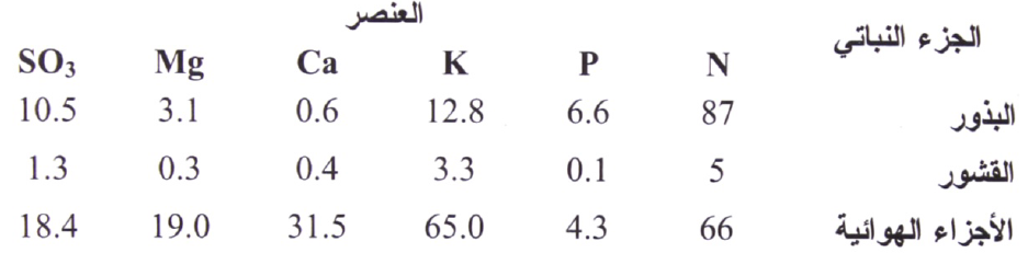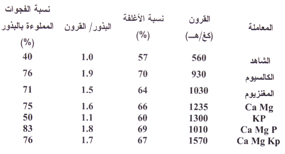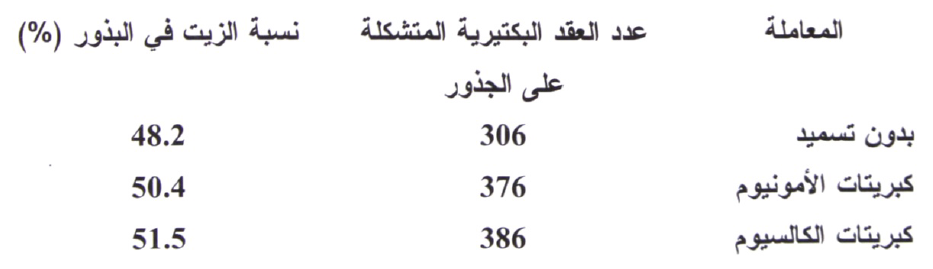 ويبين الجدول الاتي تأثير الكبريت في عدد العقد الجذرية، ونسبة الزيت في البذور: