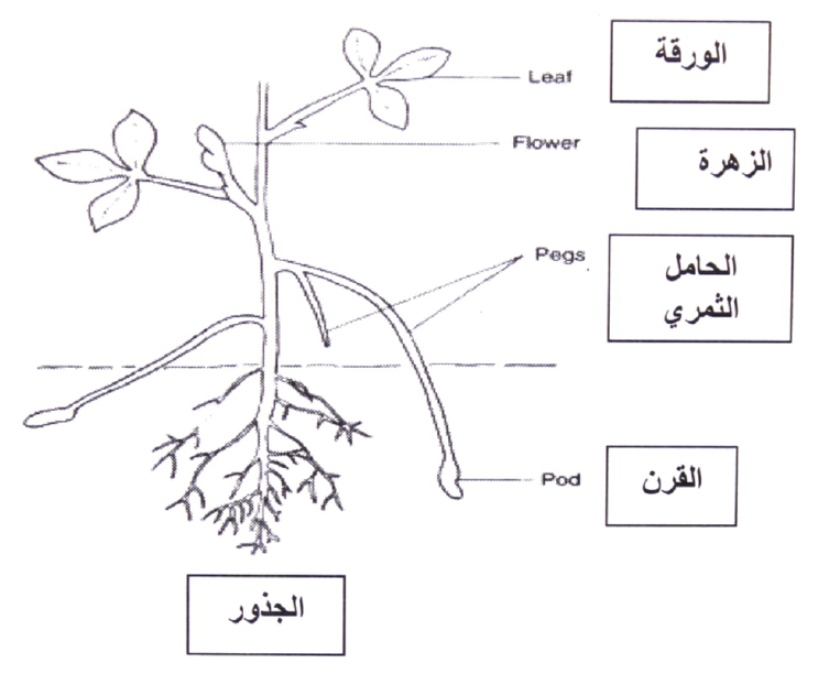 شكل يبين الأجزاء المختلفة لنبات الفول السوداني.